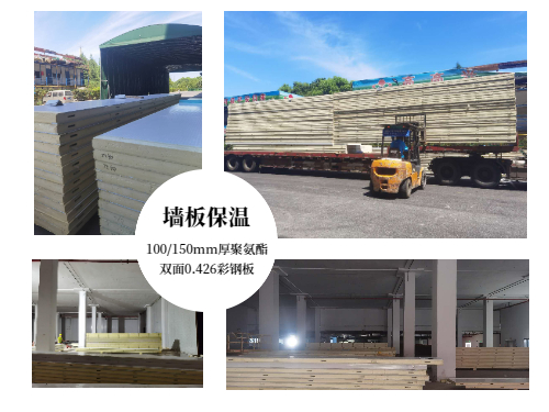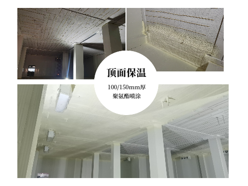 庫(kù)體墻板采用100mm(冷藏)/150mm(冷凍)聚氨酯雙面0.426彩鋼板;庫(kù)體頂面采用聚氨酯噴涂100mm(冷藏)/150mm(冷凍)厚,B1級(jí)阻燃,表面噴涂防火涂料;地面采用150mm厚擠塑板保溫。具有良好的保溫性能和防火性能,符合國(guó)家消防標(biāo)準(zhǔn)要求。