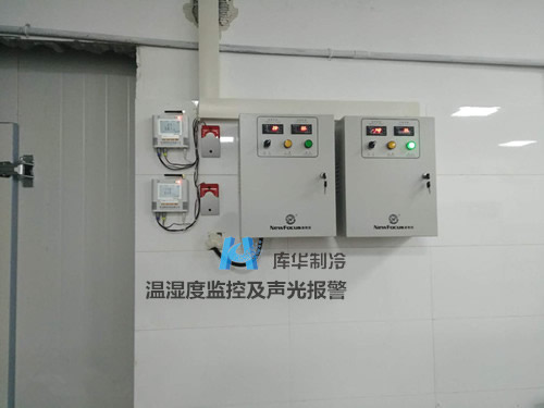 4、根據(jù)客戶要對庫房溫度進行全方位監(jiān)控和異常報警的需求,庫華工程師在雙溫冷庫的電氣系統(tǒng)設(shè)備配置上,選用高精準度的溫濕度記錄儀及聲光報警裝置,這樣庫房管理人員可以隨時監(jiān)控庫房內(nèi)的溫度。